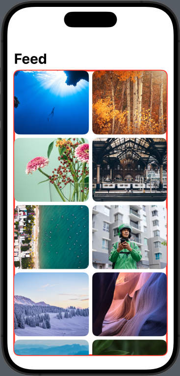 3. Faites en sorte que la ScrollView aient des coins arrondis de 12px, les images ne doivent pas dépasser de la ScrollView (.clipShape(...))