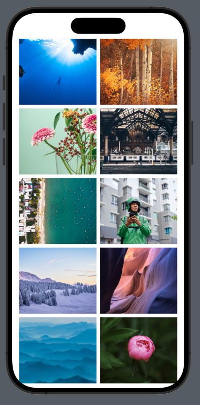 2. Utilisez LazyVGrid et AsyncImage pour afficher la grille d’images depuis la liste d’URLs fournie.